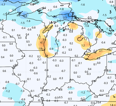 We get 24 hours precipitation free from Wednesday afternoon through Thursday afternoon. Then, a frontal boundary slides through the eastern corn belt Thursday night into midday Friday. Moisture with that front is not as impressive but will still likely have nearly 100% coverage with totals half an inch or less. What sets that round of moisture apart will be the significantly colder air that follows it into the state. We expect to be much colder Friday afternoon, and the chill stays through the weekend. We should see some sun, but the cool air mass will promote clouds and honestly, we won’t even rule out an isolated shower or two, the way things sit right now.